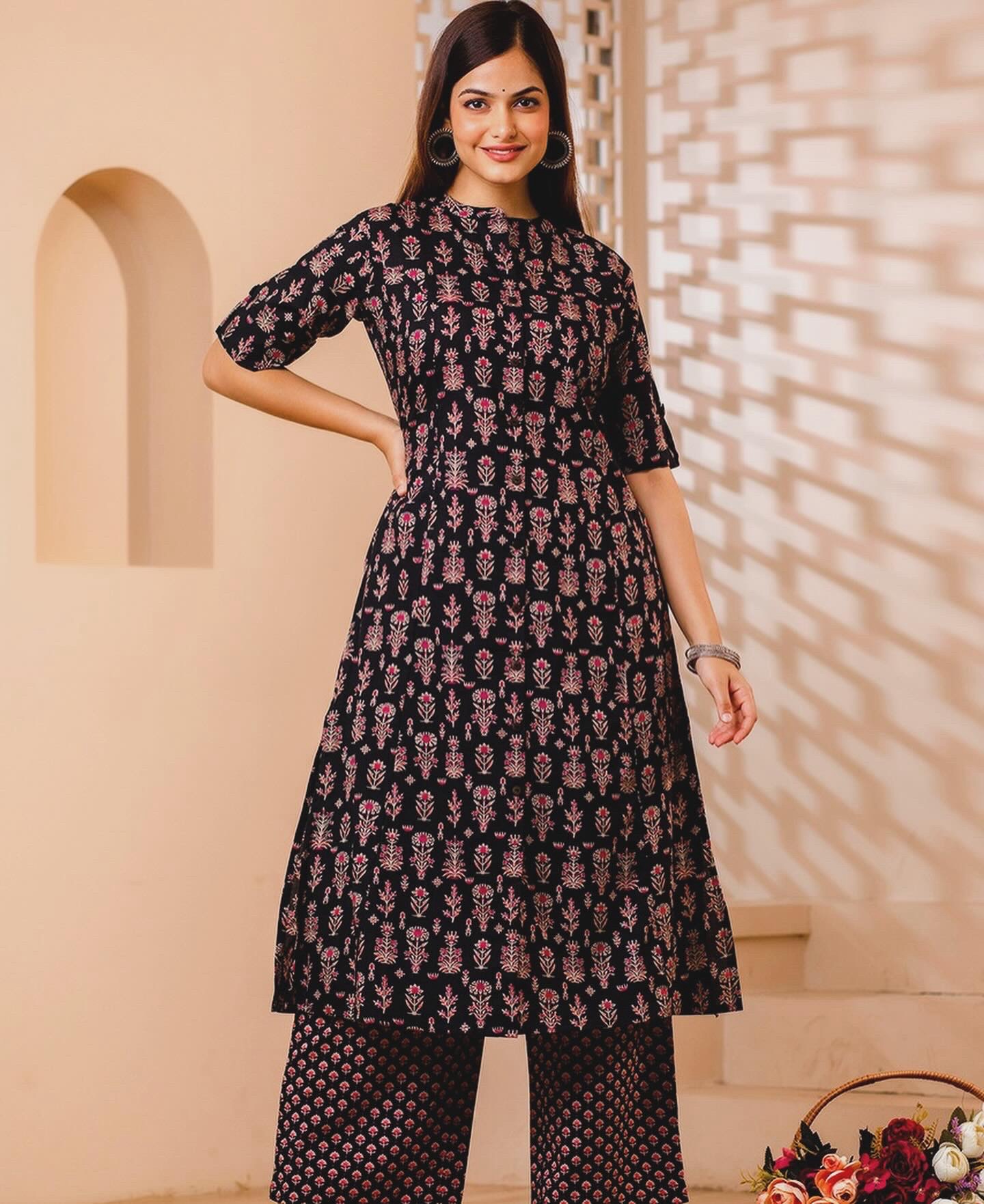 Designer new Launch Digital print Co-erd set in Aline kurti pattern paired with Ankle length pant giving perfect outfit and deliberate choice about your look.