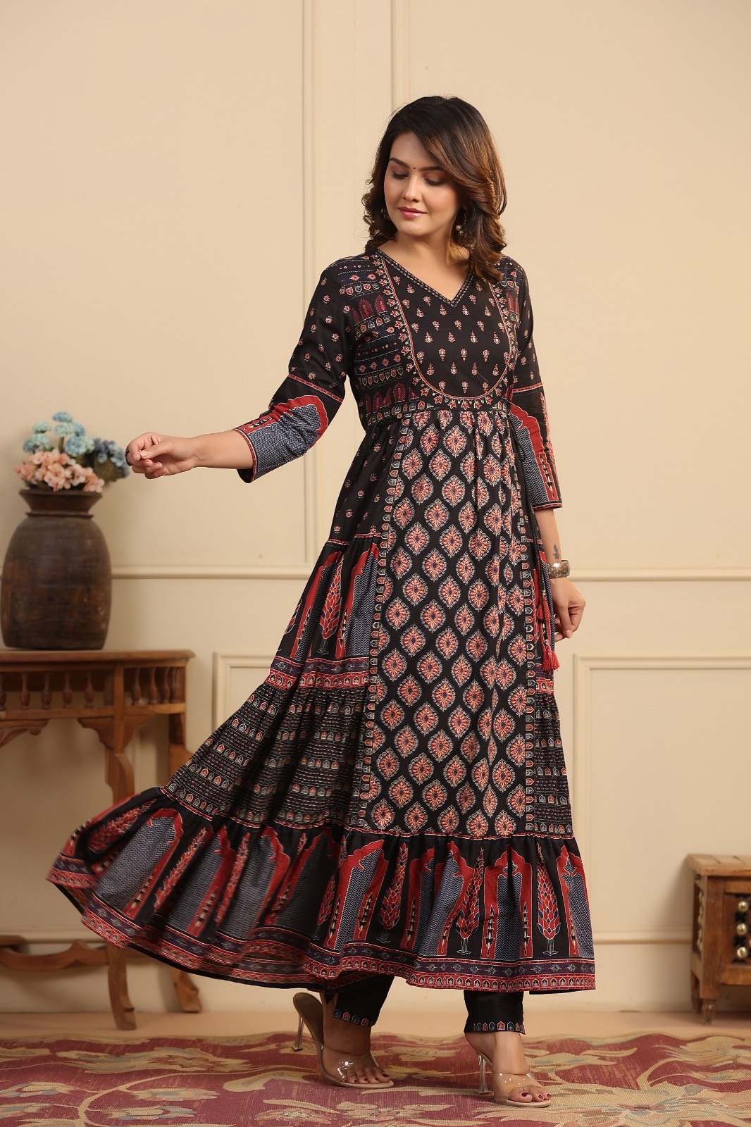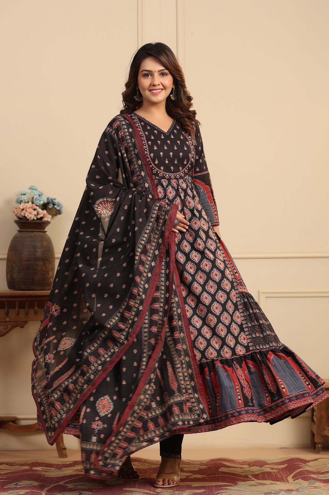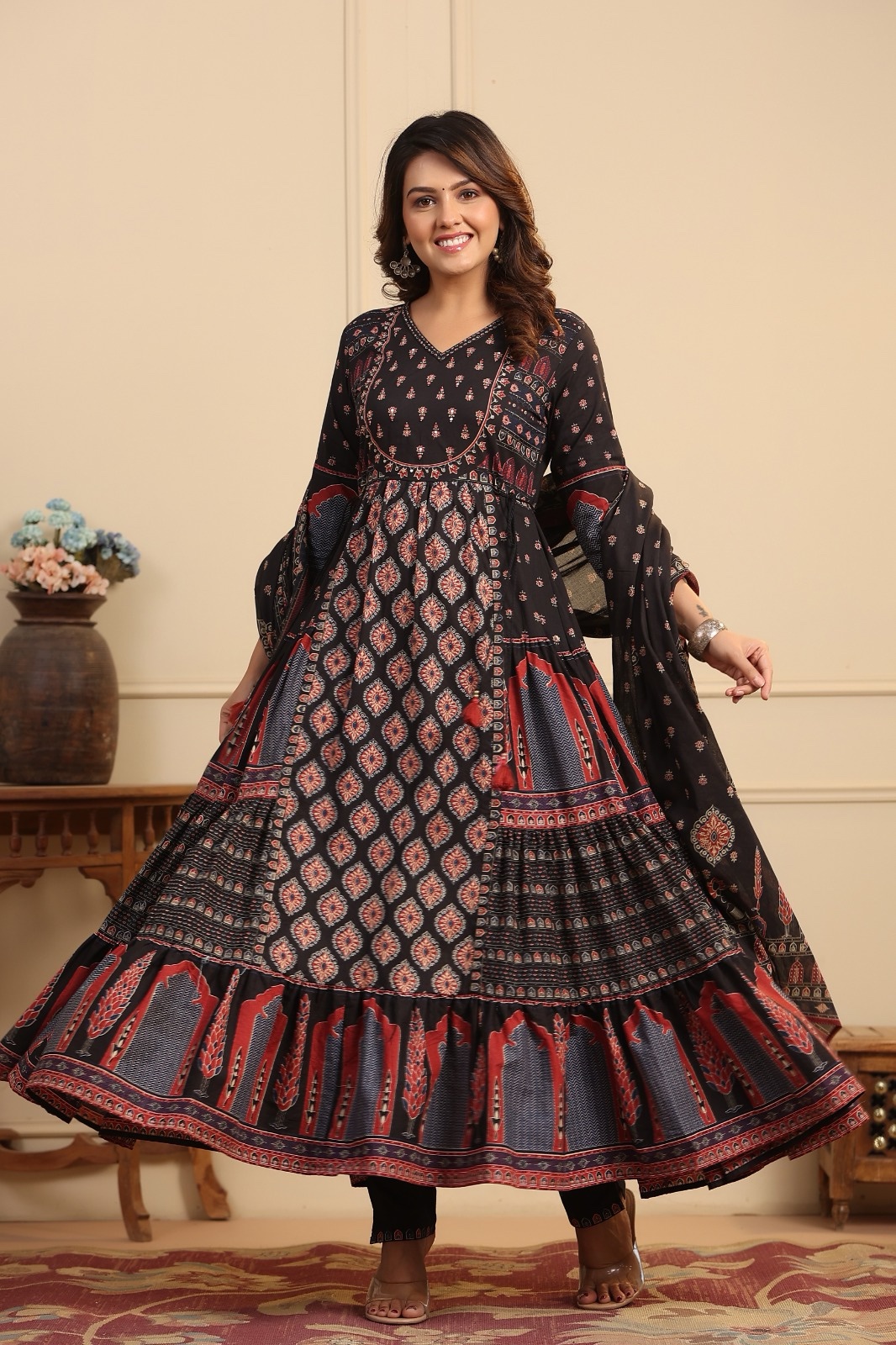 Premium Ajrak Anarkali set