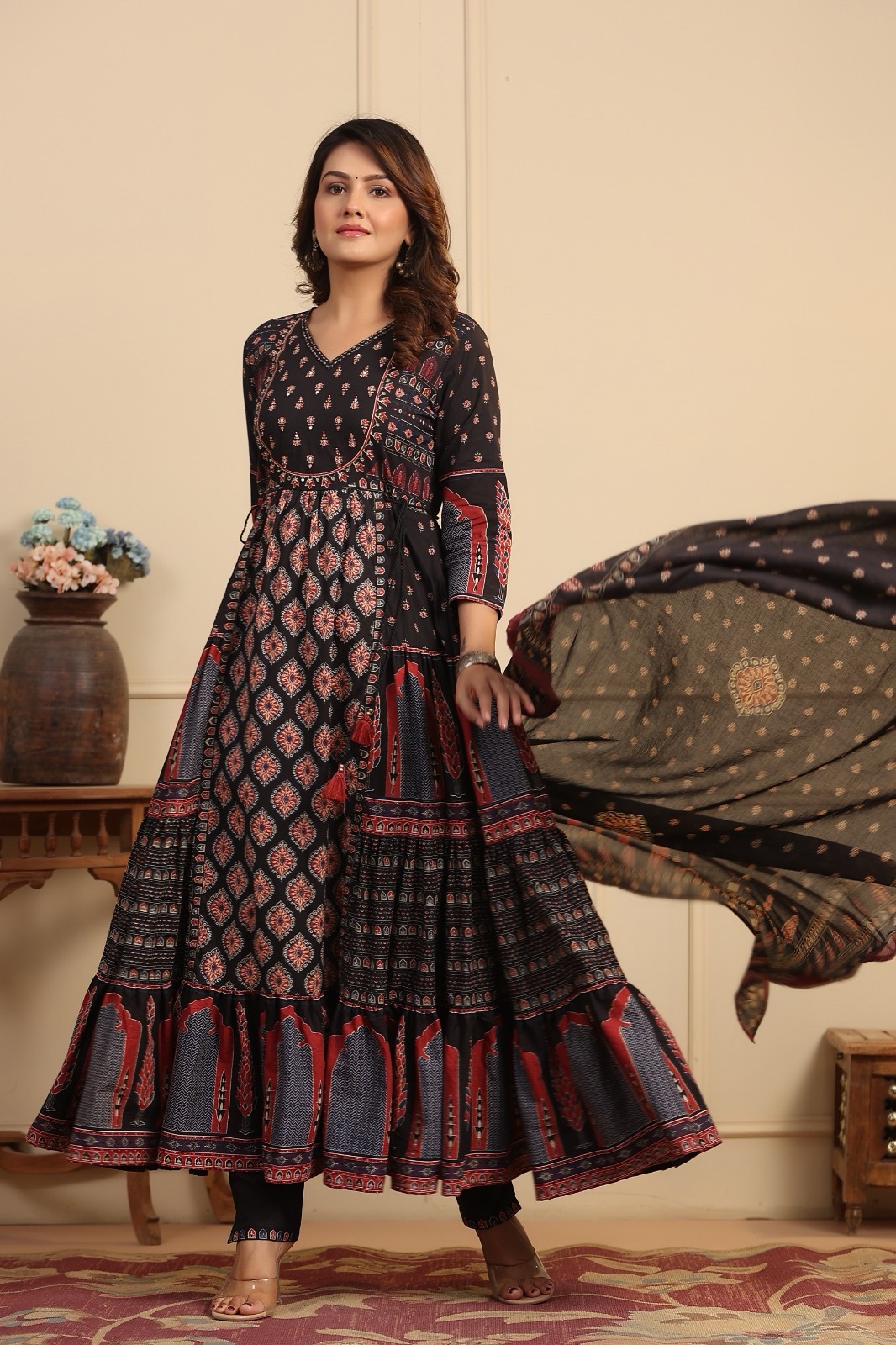 Premium Ajrak Anarkali setPremium Ajrak Anarkali set